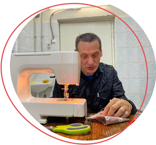 Саша научился шить еще в детском доме, очень хотел заниматься шитьем и в ПНИ, но не было швейной машинки.
